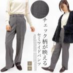 ワイドパンツ セミワイドパンツ スラックスパンツ タックパンツ ボトムス グレーチェック ウエストバックゴム 伸縮性 レディース パンツ 送料無料