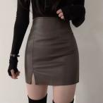 タイトスカート 秋冬新作 フェイクレザー ミニスカート ストレッチ 上質 レザースカート ハイウエスト レディース スリット ボトムス 通勤エレガント