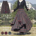 チェック柄 スカート ロングスカート レディース マキシ マキシスカート 秋冬 ドッキング Aラインスカート Aライン フレア ふんわり 綿 不規則裾
