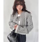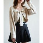 カーディガン ケーブル編みリボンボレロカーディガン レディース