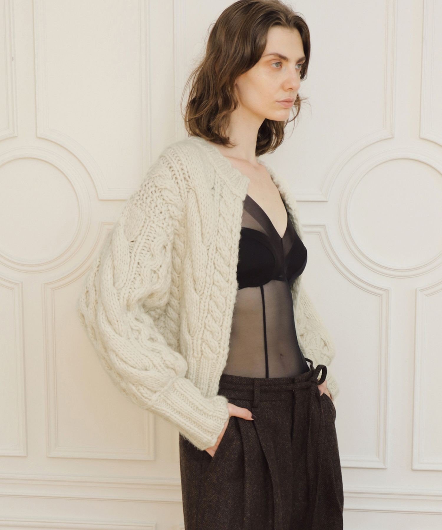 カーディガン 「EMOELLE」ケーブルボレロカーディガン レディース