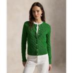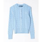 カーディガン ケーブルニット コットン クルーネック カーディガン レディース