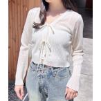 カーディガン フロントリボンメッシュカットカーディガン レディース