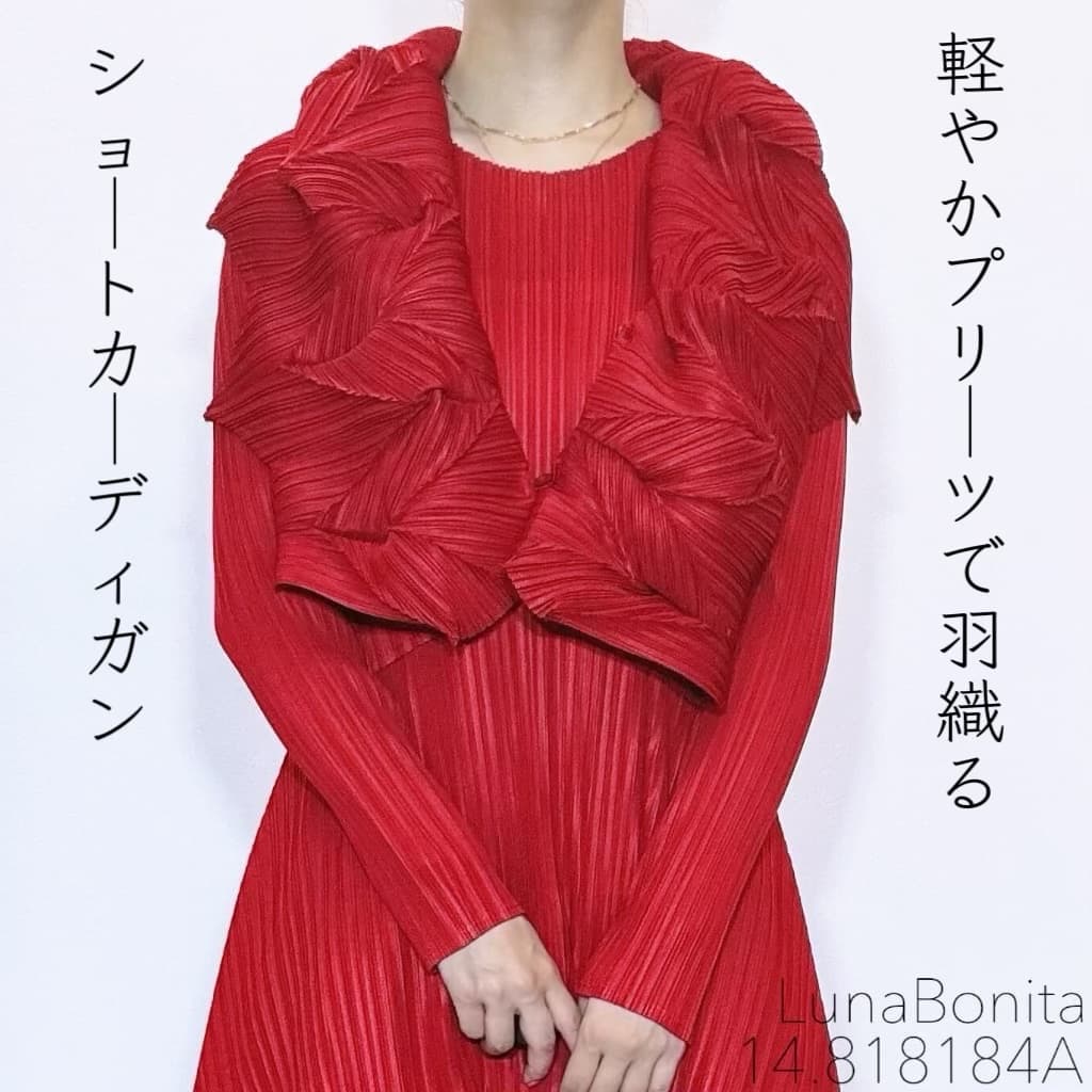 再入荷 カーディガン トップス ボレロ レディース ミセス【10%OFFクーポン対象商品】レッド プリーツ フリーサイズ 体型カバー 手洗いOK 結婚式 船の旅 カラオケ セレモニーに最適 速乾性抜群 ファッション 大人 アウター