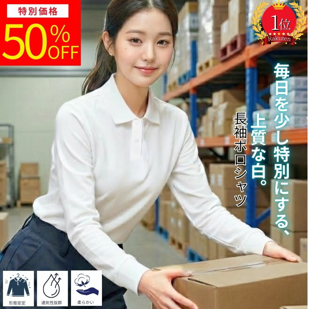 ポロシャツ レディース 長袖 カラーポロシャツ 鹿の子ポロシャツ ユニフォーム 仕事着 会社 速乾性 防しわ ガーデニングポロ