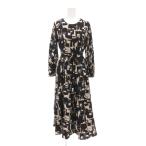 マックスマーラステュディオ Max Mara Studio ベロアワンピース ひざ丈 長袖 総柄 茶 ブラウン 黒 ブラック /GV ■GY19 レディース