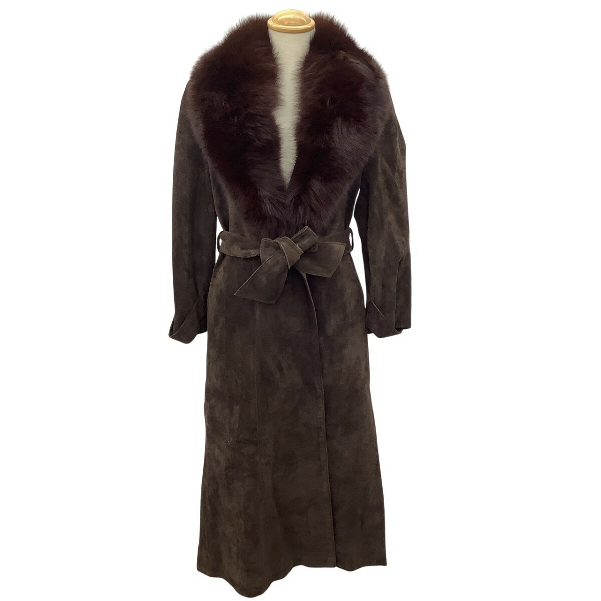 【中古】MAX MARA マックスマーラー レディース スウェード 衿フォックス コート SIZE 9号 ブラウン Cランク