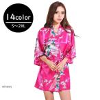 ナイトガウン ルームウエア レディース 女性用 浴衣風 ショート丈 ミニ丈 七分袖 パジャマ 部屋着 花柄 羽織物 サテン調 大人女子 Vネック ローブ ウエスト