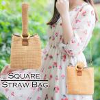 スクエア ミニ かごバッグ おしゃれ 可愛い 2way ハンドバッグ ショルダーバッグ シンプル 編みカゴ風 夏 浴衣バッグ 小さめ ストローバッグ ボーダー
