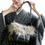 ファー付2wayミニショルダーバッグ 羊革×プレミアムリサイクル ブラック×シュナウザー グレー フェイクファー かご カジュアル モード 和装 和服 洋服にも