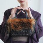 ファー付ミニトートバッグ 羊革×ラフィア ブラック×ブラウンテリア フェイクファー かごバッグ 和装 和服 カジュアル 個性派 モード 和装バッグ 洋服にも