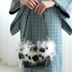 ファー付2wayミニショルダーバッグ 牛革×プレミアムリサイクル ブラック×ダルメシアン フェイクファー かごバッグ 和装 カジュアル 個性派 モード 和装バッグ