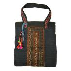 モン族 布製トートバッグ ショルダーバッグ 濃紺 アクセサリー付き アジアン雑貨 タイ エスニック おしゃれな布のバッグ