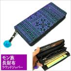 モン族の長財布 パープル・ブルー系 ラウンドジッパー エスニック おしゃれな財布 変わった財布 多機能 財布 アジアン 雑貨 バリ 雑貨 タイ 雑貨