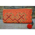 長財布 モン族オレンジ 個性的財布 民族 たっぷり入る財布 アジアン エスニック 刺繍財布 レターパック対応