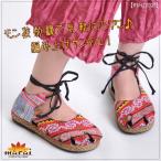 サンダル モン族刺繍で気軽にアジアン 編み上げサンダル