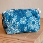 メイクポーチ 小物入れ メイクバッグ インディゴブルーの伝統泥染め 唐草 メーク 財布 モン族 民族柄