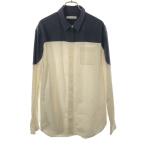 LACOSTE ラコステ シルクブレンド 長袖 バイカラー シャツ 38 ネイビー×ホワイト レディース 古着 中古