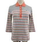 ラコステ LACOSTE ポロシャツ プルオーバー ボーダー 刺繍 七分袖 42 グレー ピンク レディース