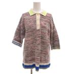ラコステ LACOSTE ニット ポロシャツ 36 マルチカラー 赤 レッド ロゴ刺繍 七分袖 ミックスカラー /KR ■GY59 レディース