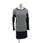 ラコステ LACOSTE ニット ワンピース ロング 長袖 36 紺 ネイビー ボーダー /FF レディース