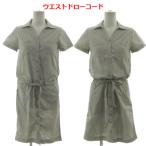 ラコステ LACOSTE スキッパーカラーシャツワンピース EF175E 胸ポケ ロゴ刺繍 半袖 ウエストドローコード コットン グレー系 カーキグレー