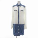 ラコステ LACOSTE シャツワンピース シルク混 長袖 38 白 青 /UO レディース