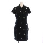 ラコステ LACOSTE MARY QUANT タイトワンピース ポロシャツ ひざ丈 半袖 レギュラーカラー ハーフボタン ストレッチ 花柄 ロゴ 刺繍 黒