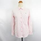 ラコステ LACOSTE シャツ ブラウス ボタンダウン 長袖 ストライプ ロゴ ストレッチ 38 ピンク系 ※EKM レディース