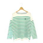ラコステ LACOSTE ボーダーカットソー 七分袖 42 オフホワイト ライトグリーン グリーン /DO ■GY48 レディース