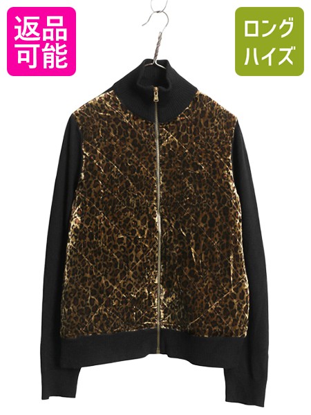 ローレン ラルフローレン フルジップ ヒョウ柄 切替 ニット セーター ジャケット レディース L 程 ウール レーヨン シルク ベロア ブラック| 古着 中古 黒 POLO RALPH LAUREN ポロ ドライバーズ ニットセーター 長袖セーター ニットジャケット ジップアップ 高級 カジュアル