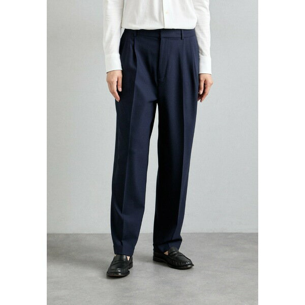ラルフローレン レディース カジュアルパンツ ボトムス PINSTRIPE WOOL-CASHMERE PLEATED TROUSER - Suit trousers - navy