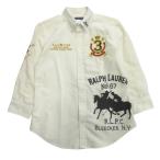 RALPH LAUREN ラルフローレン シャツ カットソー 七分丈 ボタンダウン プリント エンブレム 刺繍 5f 白 ホワイト レディース 古着 中古