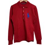 美品 RALPH LAUREN ラルフローレン ビッグポニー 鹿の子 ロングスリーブ ポロシャツ カットソー サイズM レッド レディース 古着 中古