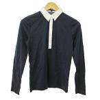 アールエルラルフローレン RL RALPH LAUREN 美品 ポロシャツ カットソー 長袖 白襟 L 紺 ネイビー 0924 IBO78 レディース