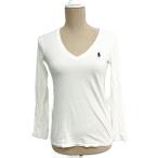 ラルフローレン RALPH LAUREN スポーツ Tシャツ カットソー Vネック 長袖 ポニー刺? 白 ホワイト XS ■MET1 レディース
