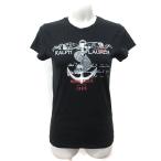 RALPH LAUREN レーヨンストレッチ ビッグポロ プリント 半袖Tシャツ カットソー ブラック レディース ラルフローレン【中古】5-0616S