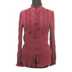 POLO RALPH LAUREN ポロ ラルフローレン プリーツ加工 シルク シアー シャツ ブラウス カットソー スタンドカラー 2 ボルドー レディース 古着 中古