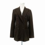 ローレンラルフローレン テーラードジャケット ダブルボタン ミドル丈 ストライプ柄 ウール 4 L ダークブラウン 黄色 レディース