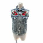 デニム&サプライ ラルフローレン デニムジャケット Gジャン ジージャン ベスト ミドル丈 花柄刺繍 ダメージ加工 XS 水色 レディース