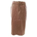 ラルフローレン RALPH LAUREN ラムレザー ラムスキン タイト スカート 膝丈 本革 11 茶 ブラウン 1006 レディース