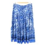 未使用品 ローレンラルフローレン タグ付き ロング スカート フレア 総柄 ウエストゴム 薄手 Sサイズ 青 ブルー レディース