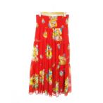 未使用品 ローレンラルフローレン LAUREN RALPH LAUREN ティアードスカート ロング ハイウエスト ウエストゴム シアー 花柄 S 赤