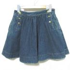 美品 RALPH LAUREN ラルフローレン 碇釦 ダメージ加工 デニム フレア ミニスカート 9 インディゴ レディース 古着 中古