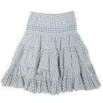 【中古】良品 RALPH LAUREN ラルフローレン チェック ティアードフリル スカート フレア ギャザー コットン 7 オフ白×青 レディース Luxs ブランド古着のリュクス