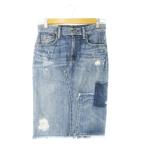 ポロ ラルフローレン POLO RALPH LAUREN デニムタイトスカート ひざ丈 リペアデザイン ダメージ加工 小さいサイズ 0 XS 青
