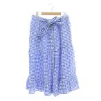 ポロ ラルフローレン ギンガム リネン ティアード スカート ギャザー チェック ウエストリボン 麻 ミモレロング ひざ丈 6 L 青