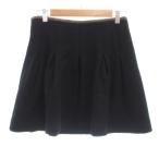 ラルフローレン RALPH LAUREN ミニスカート フレア ウールモッサ レザー切替 2 黒 ブラック /JS レディース