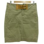 ラルフローレンスポーツ RALPH LAUREN SPORT タイトスカート 4 ベージュ 無地 バックル装飾 レザー切り替え ひざ丈 ポケット付き /KB