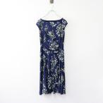 ローレンラルフローレン LAUREN RALPH LAUREN フラワープリントギャザーワンピース 00 ネイビー┃花柄ドレス【2400014608878】